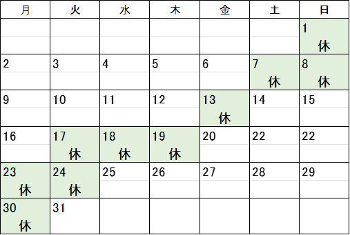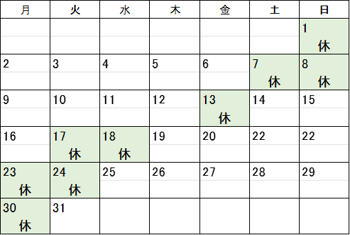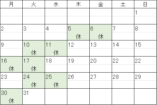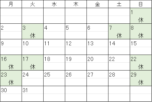 ※東広島・米子・松江・八代エリアの営業日につきましては下記のエリア別カレンダーでご確認ください。