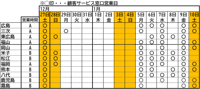 【年末年始の窓口営業日】